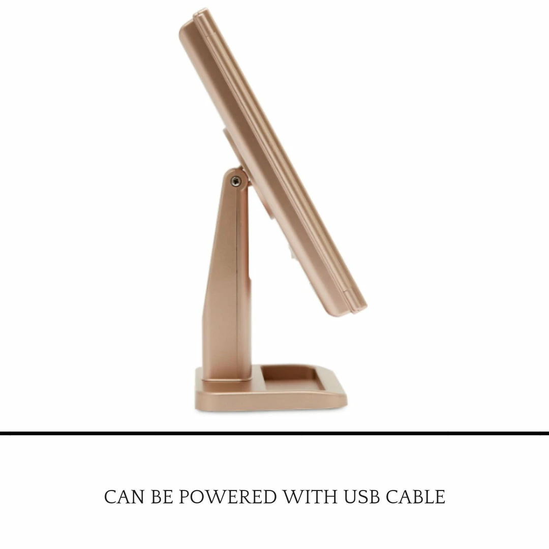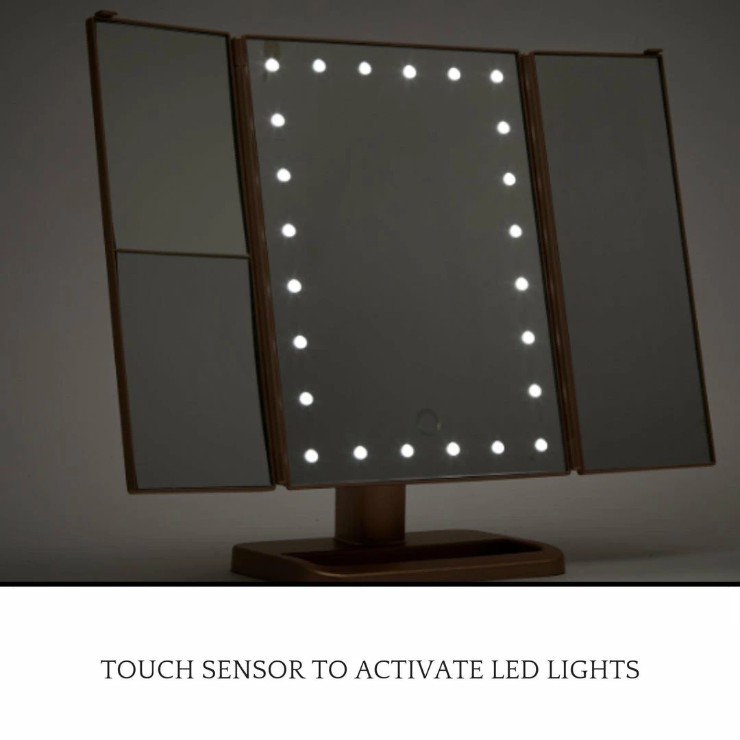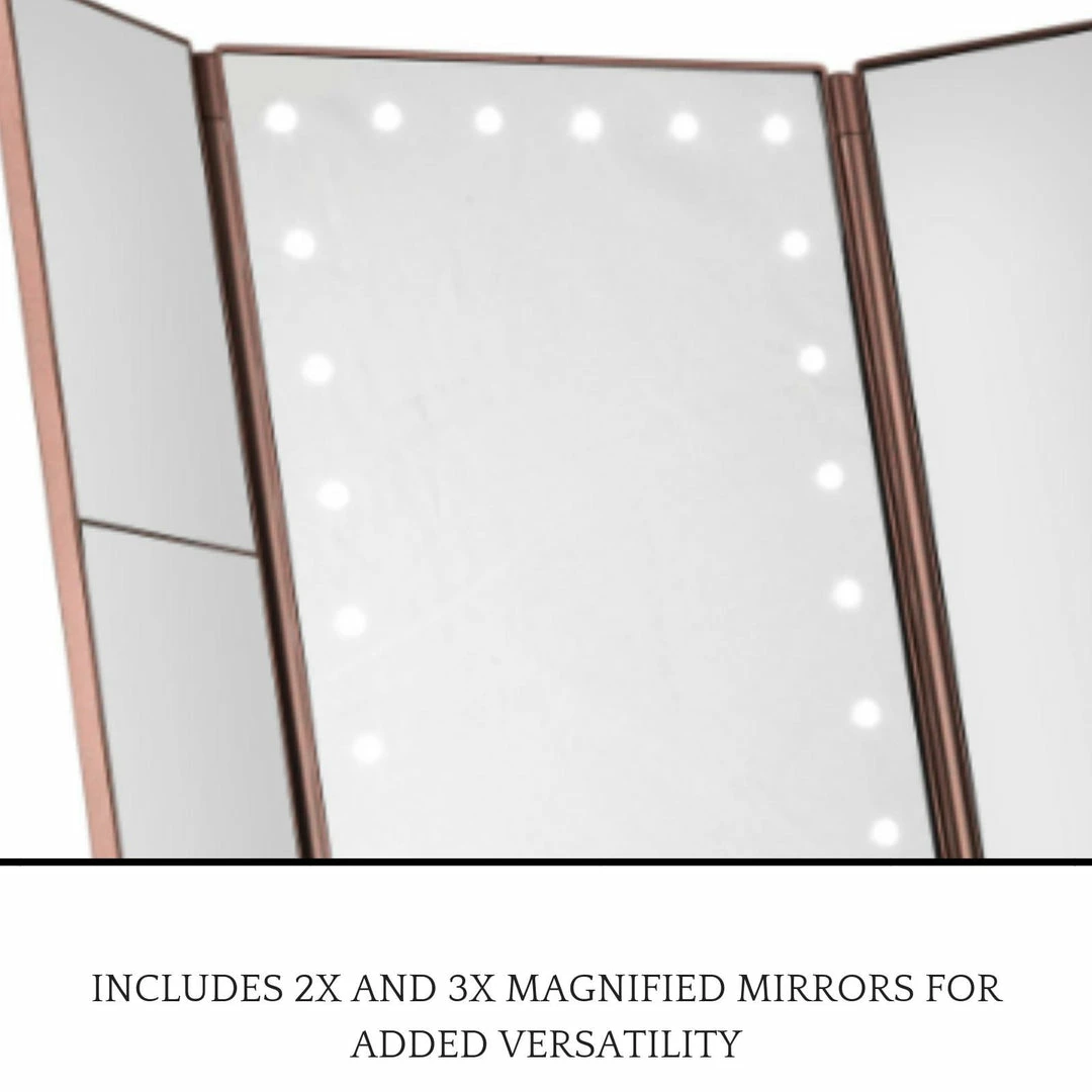 3-Way Makeup Mirror w/ LED Lights – Rose Gold