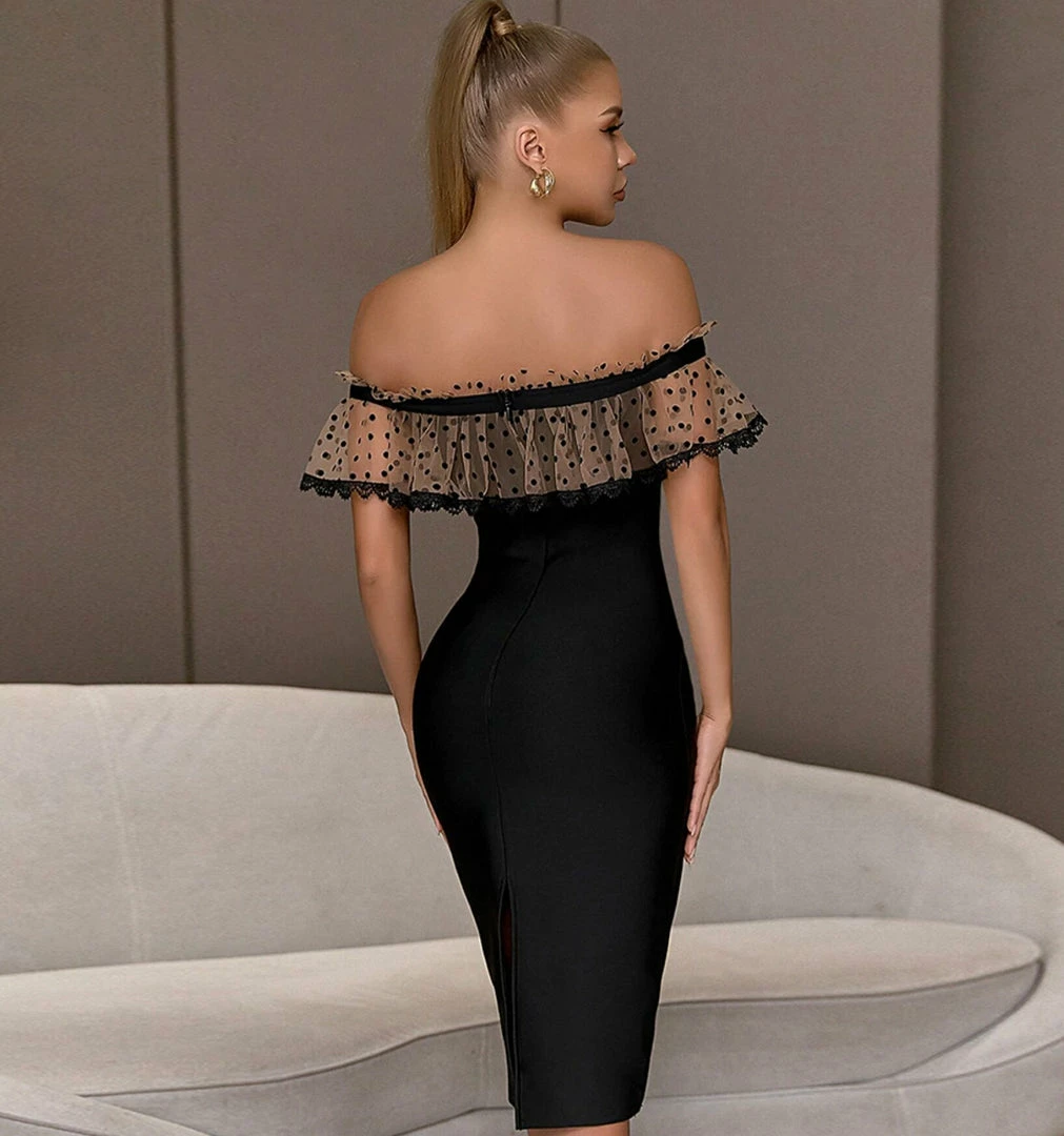 This dress is the perfect outfit for a dinner date, wedding party or any other special occasion. The stylish and unique design will have heads turning so you can shine on the big day. This figure-hugging black bandage lace dress is equipped with buttons down the front, sexy lace frill overlay and making it the ideal choice for your special night out.