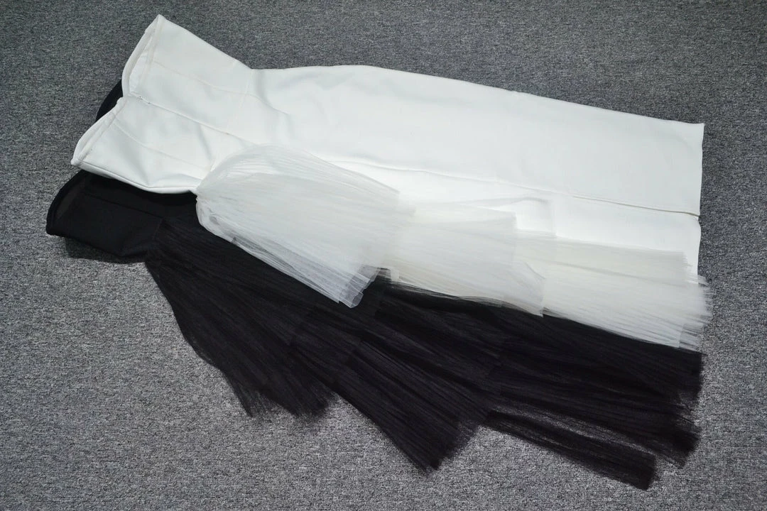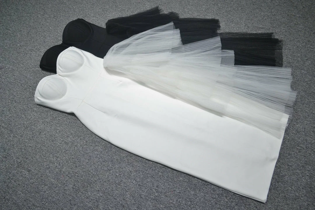 This stunning, chic womens black lbd strapless dress will set off your feminine curves and make you stand out from the crowd. The Black Violet Dress features a soft, bandage bodycon fabric that hugs your figure in all the right places. It is made with side organza for a little extra sexiness and delicate tulle detail that adorns the neckline. The unique strapless design ensures that this will be a head-turner at any party or event!
