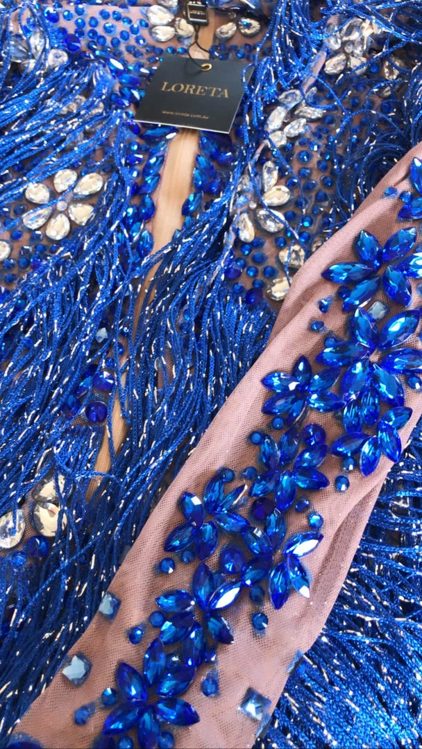Are you determined to be extra different from everyone else? The stunning crystal blue Crystal dress by Loreta is an embellished, hand-beaded, sequins dress, with a nude sheer mesh tulle fabric. Made from premium materials.