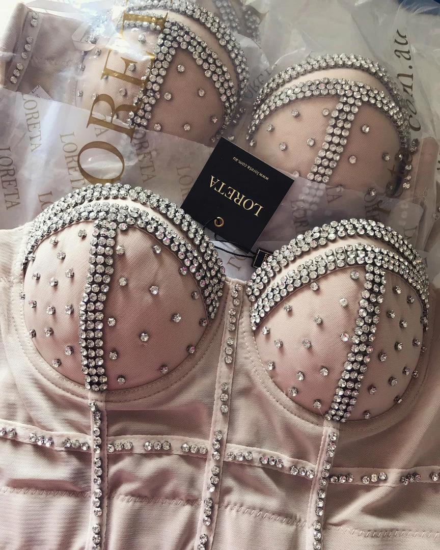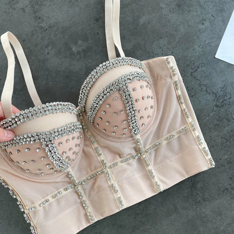 Material: Made from mesh, spandex, polyester & crystals.
