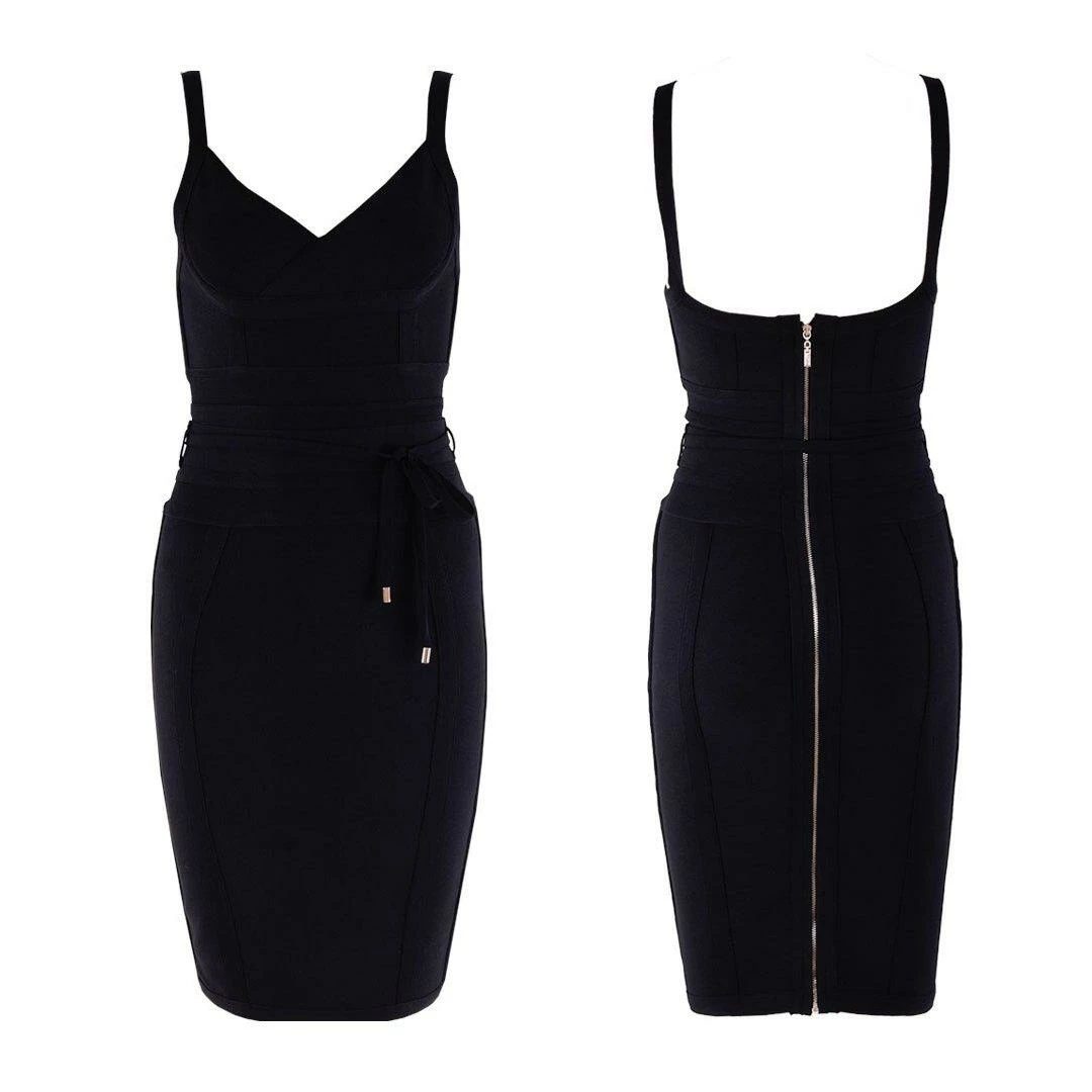 A gorgeous combination of sweet and sultry, this gorgeous bandage dress is truly a show-stopper. The figure-hugging style smooths out your body’s natural curves and highlights the long metal zipper at the back, while the low v-neck highlights your top for ultimate impact.