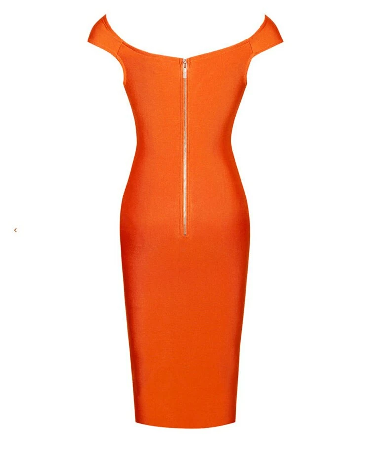 Make your presence known with this Orange Glory Dress! It’s a bodycon dress that features a deep v-neckline and an exposed gold back zipper. It’s tight in all the right spots, but it won’t constrict your moves. And you’ll likely get compliments about your curves all day long. It’s perfect as a cocktail party dress or even a guest dress for your friend’s spring wedding.