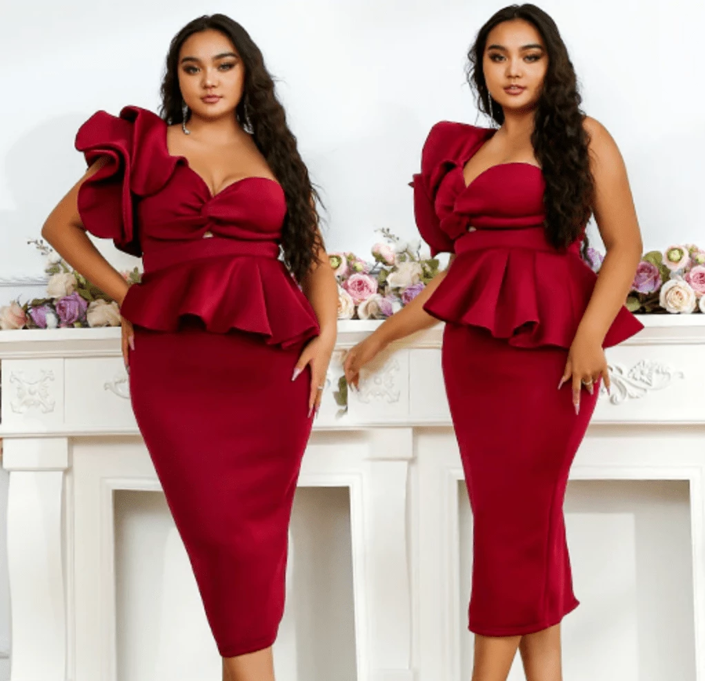 Strike a pose and show off them curves with our stunning Sensation Dress (Cherry) dress. Offering a stretchy material that flatters your figure, the garment boasts a one-shoulder neckline. A perfect evening/cocktail dress.