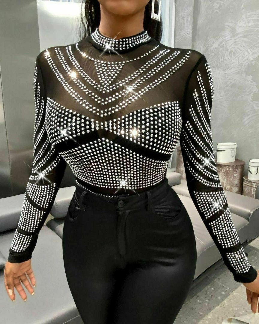 Sultry, bling and eye-catching. That’s how people describe our Xtreme Bodysuit—and we agree! You can definitely add some sex appeal to your night-out look with this bodysuit. The silver beads across it make everything glitzy, and the back detail is stunning. Plus, it’s made from Polyester and Spandex, so it will hug your curves without being too constricting. Pair this bodysuit with black, tight and high-waisted jeans, and you’re ready to hit the club!