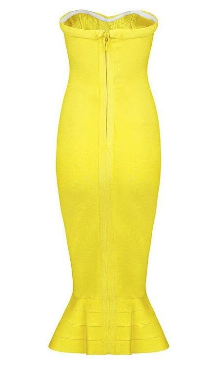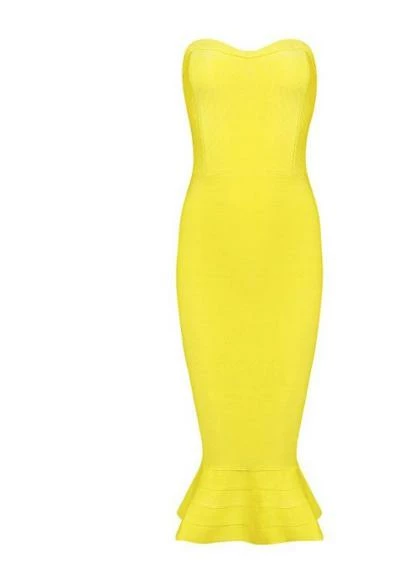 Featuring a flattering bandage material, with a frill hem and classy midi length. Style this dress with strappy heels and a statement clutch for a look that will get you noticed.