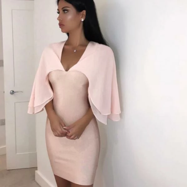 A perfect romantic look made for any occasion, the Dreamy Dress is an absolute must-have for any woman. Designed to flatter every body type, the gorgeous bandage dress hugs curves while the light ruffled cape adds a layer of soft lines and movement. A beautiful feminine style for any season.