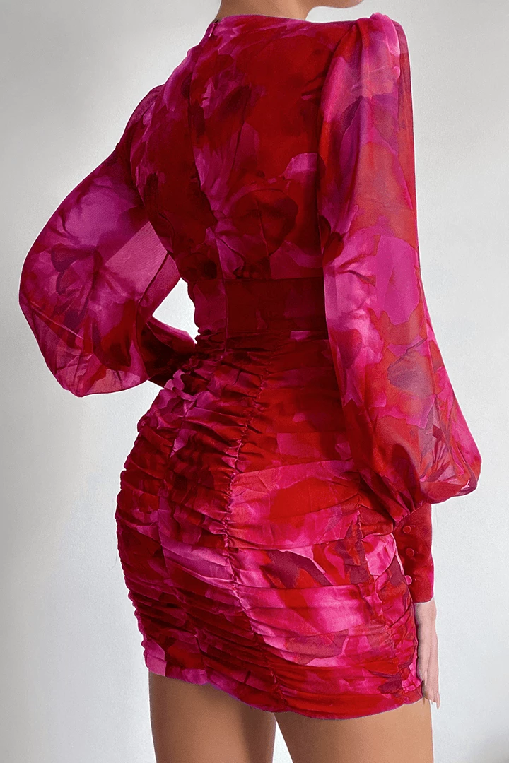 The ‘fit for all occasion’s. Our Lolita pink Dress features a V-neckline, long puff sleeves with buttons on the cuffs, centre-front button detailing on the waistband, a centre-back invisible zipper, ruching, lining and no stretch. Brand:runaway