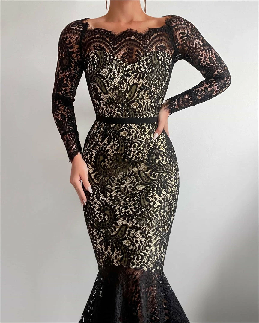 Lucy | Black with fishtail lace design