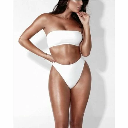 Show off those sexy legs with this high-cut bikini set. The wide bandeau top sits comfortably in place for a seamless look that works with every body and style.