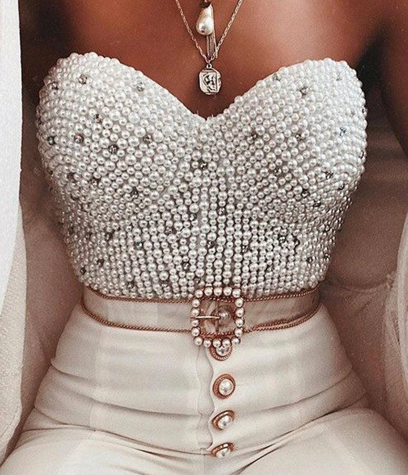 Pearl Bustier Corset Encrusted with Crystals