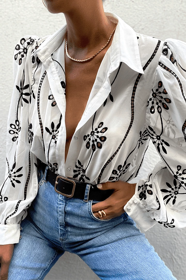You can never have enough button-up shirts in your wardrobe. Our Phoebe Blouse/Shirt has long sleeves, a centre-front button opening and perforated patterns throughout the garment. Brand: Seven wonders
