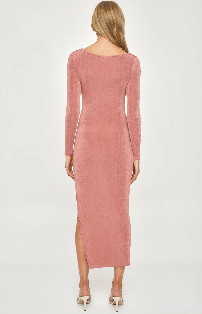 Our Rose Maxi Cut Out Dress is perfect for any occasion. The slinky jersey fabrication and long sleeve design of this flowy maxi dress features a low scoop neckline and cut out detail under the bust. Split detail on side gives this dress a unique touch. Pair with nude heels and statement earrings for a complete look.
