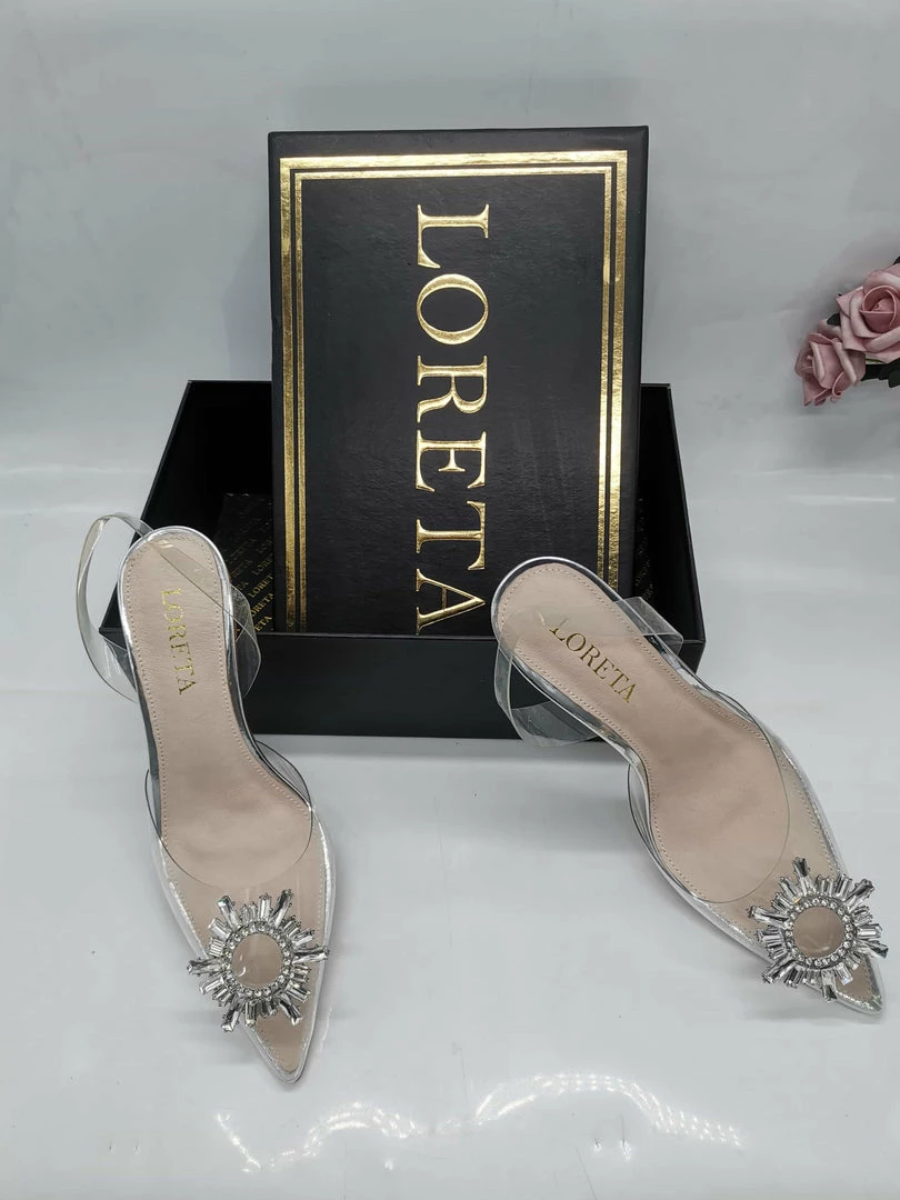 Elevate your style to new heights with our Crystal Star Heels. Featuring a chic clear perspex upper and genuine sheepskin leather lining/sole, these heels are sure to turn heads wherever you go. A round toe, 9cm heel and crystal star detail finish them off perfectly..