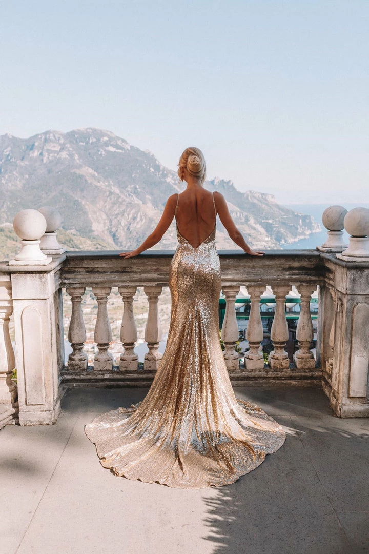 Plunge V neckline exposed low back with zipper. Stretchy fabric