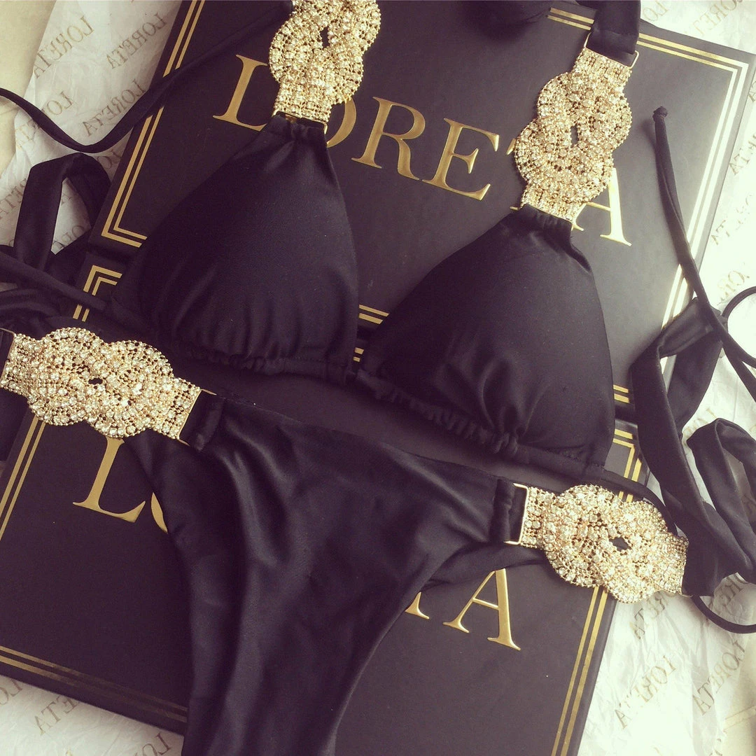 Cleo crystal, rhinestone gold bikini set