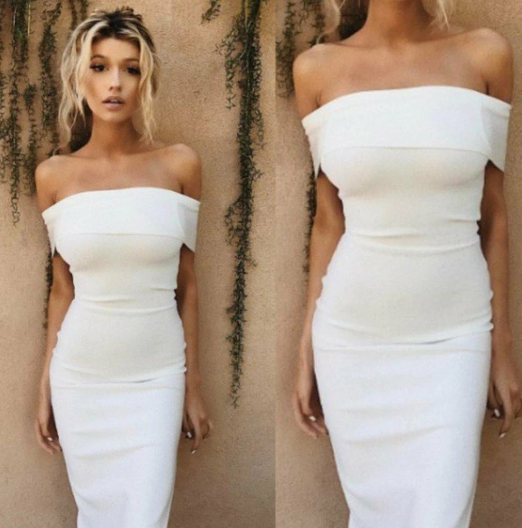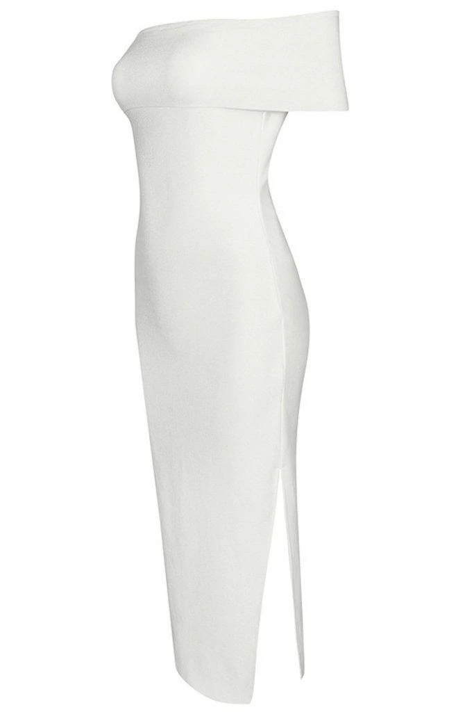 Sleek, sexy and flawlessly elegant, this your go-to dress for any occasion. It has a form-fitting cut, bardot neckline and high side slit to show off those gorgeous legs. The perfect style to take you from day to night.