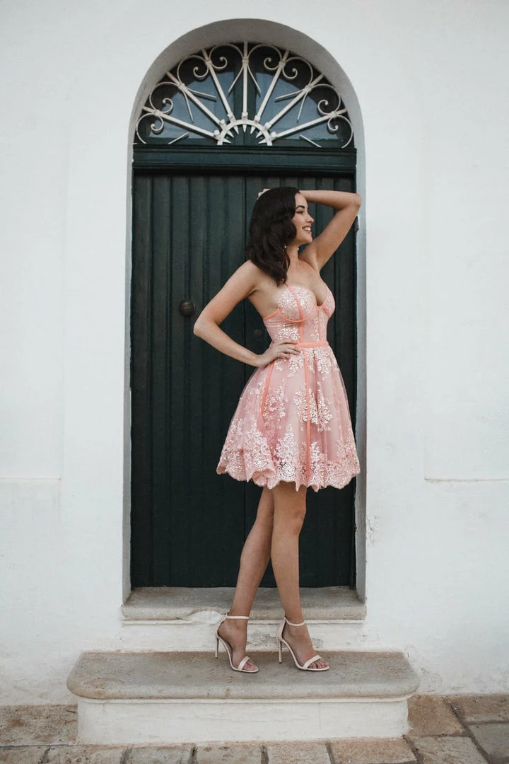 We are totally and utterly head over heels in love with ‘Tutu’. Hand sewn using the finest delicate lace and bodice detail, ‘Tutu’ is one of the prettiest dresses we’ve ever designed. Beautiful peach bodicing details complete this fairytale dress.