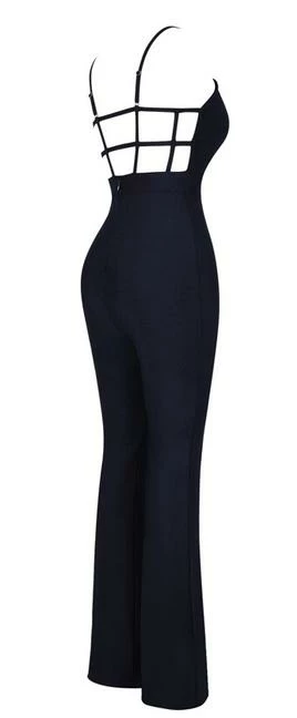 Designed to show off all those beautiful curves, this long lean jumpsuit is a stunning look for any occasion. Featuring a square neckline, spaghetti straps and wide net strapping at the back, the figure-hugging style is accented perfectly with the wide cinched waistline.